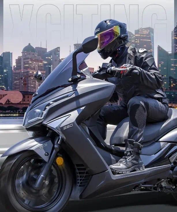 平踏板结构,与赛艇250的龙骨车架形成差异化定位,座桶可容纳一顶全盔及日常杂物。搭载新一代水冷四气门引擎,整车采用双层环抱车架,兼顾车身刚性与操控灵活性。