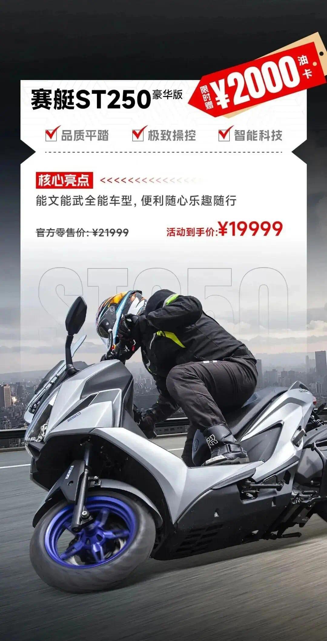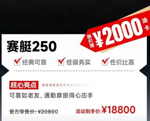 近日光阳官宣旗下两款赛艇250,限时赠送2000元油卡,相当于官降2000元,约等于入手价18800元。